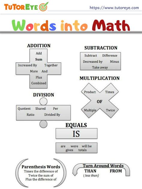 math words into english word teaching vocabulary activities grade problems translating classroom algebra mathematics operations maths key worksheet worksheets diagram
